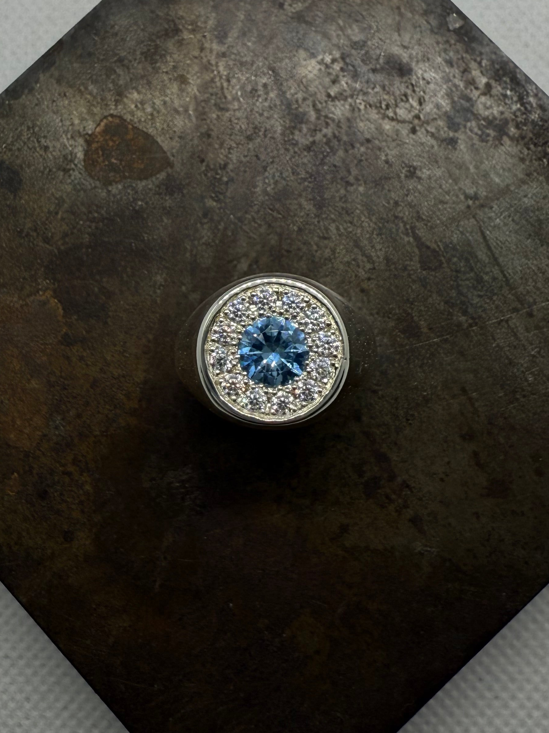 - Pierre centrale : Oxyde de zirconium bleu ciel