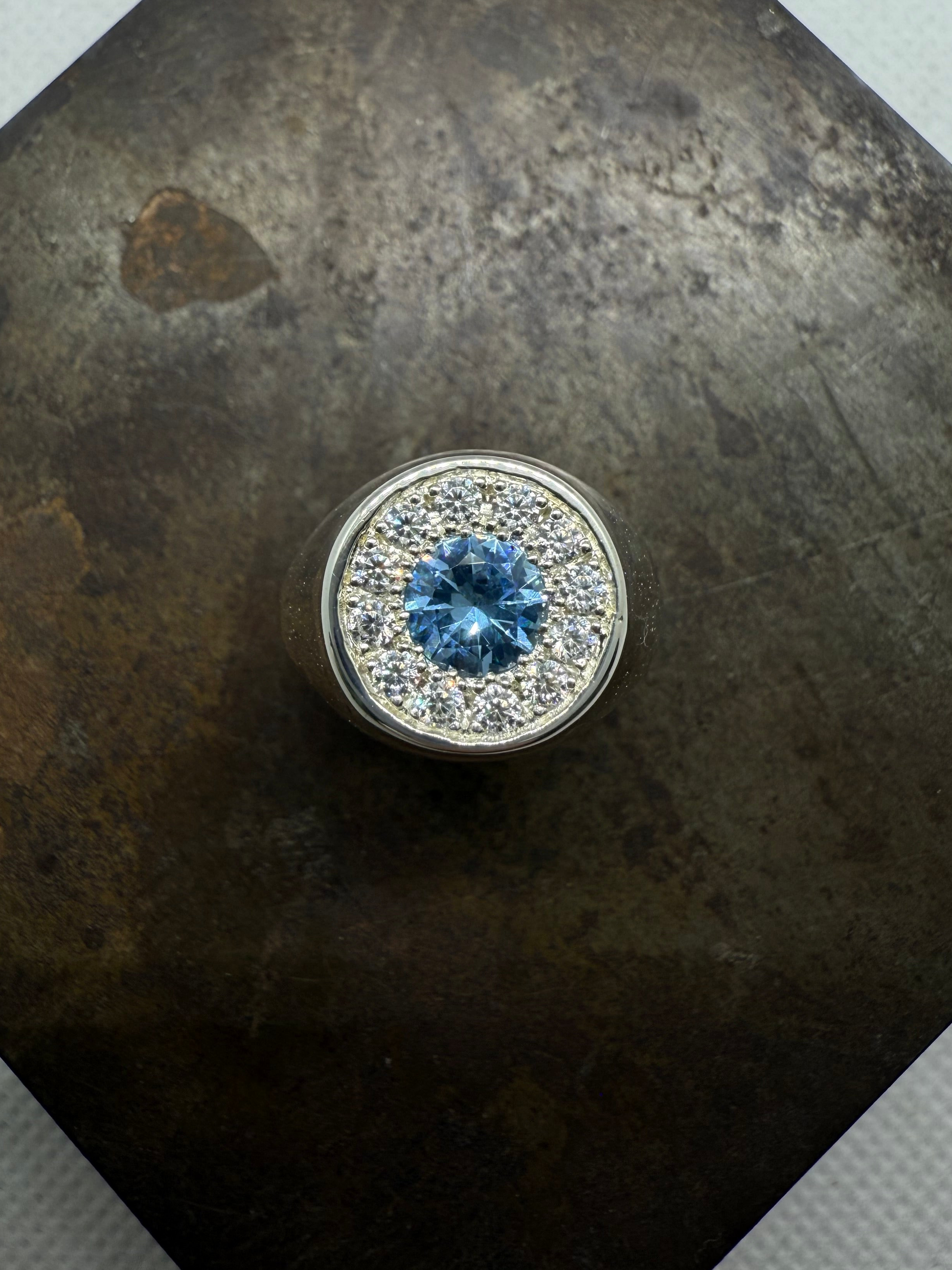 Chevalière entourage bleu ciel