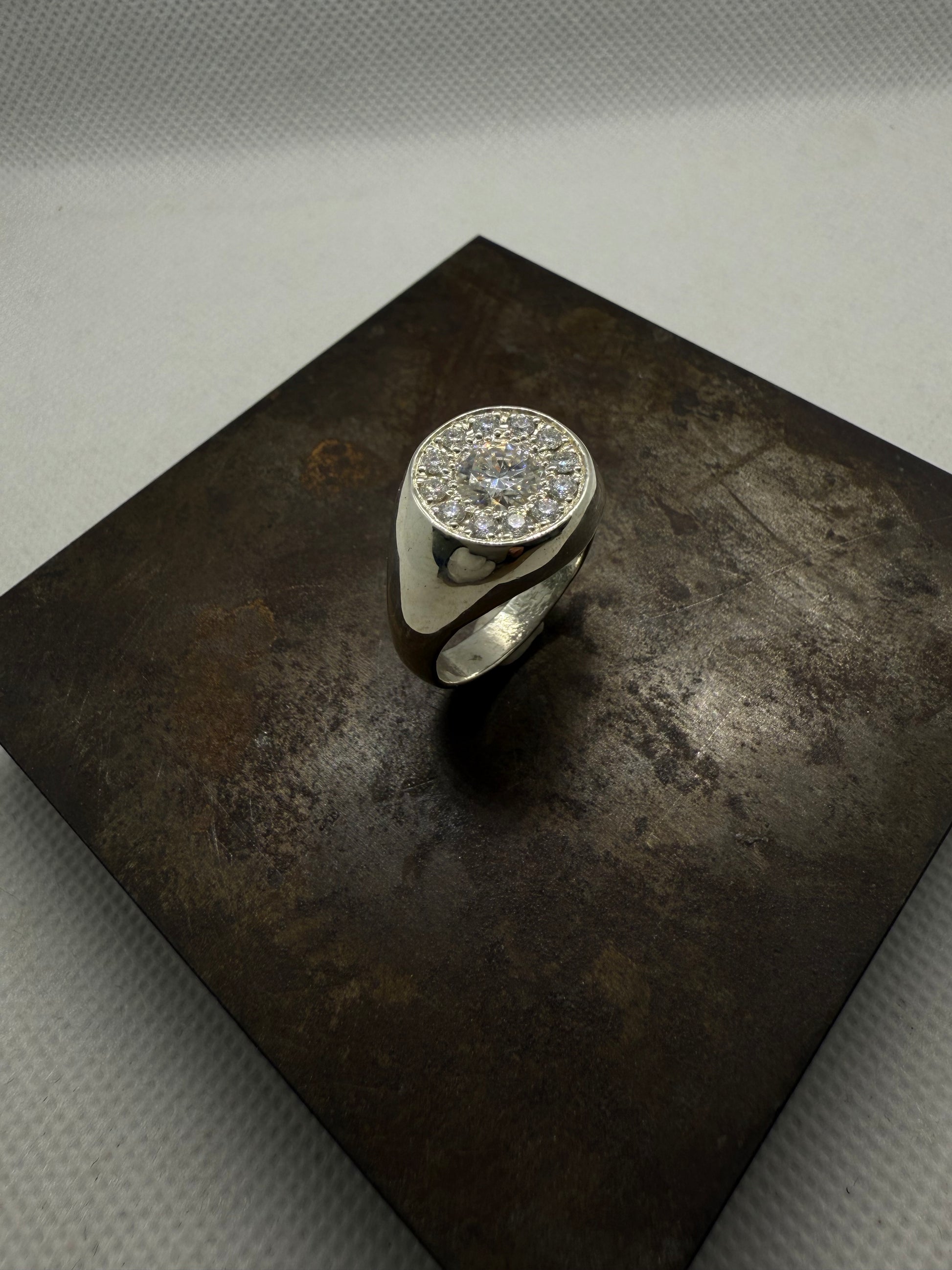 Chevalière argent massif entourage Moissanite VVS